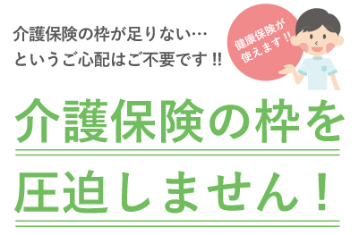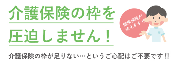 あんしん福寿治療院では、各種介護サービスをご利用の方でも併用が可能です。そのため、介護保険の枠は心配ご無用です。